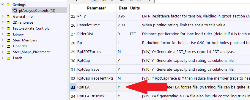 The best way to create a F3D file is to use the FEA report file from a bridge analysis. Best to use a BDF file for a small bridge so the resulting FEA file is not to cumbersome to edit. Before doing a run, either LFR or LRFR, set the AnalysisControls switch “RptFEA” to “Y”